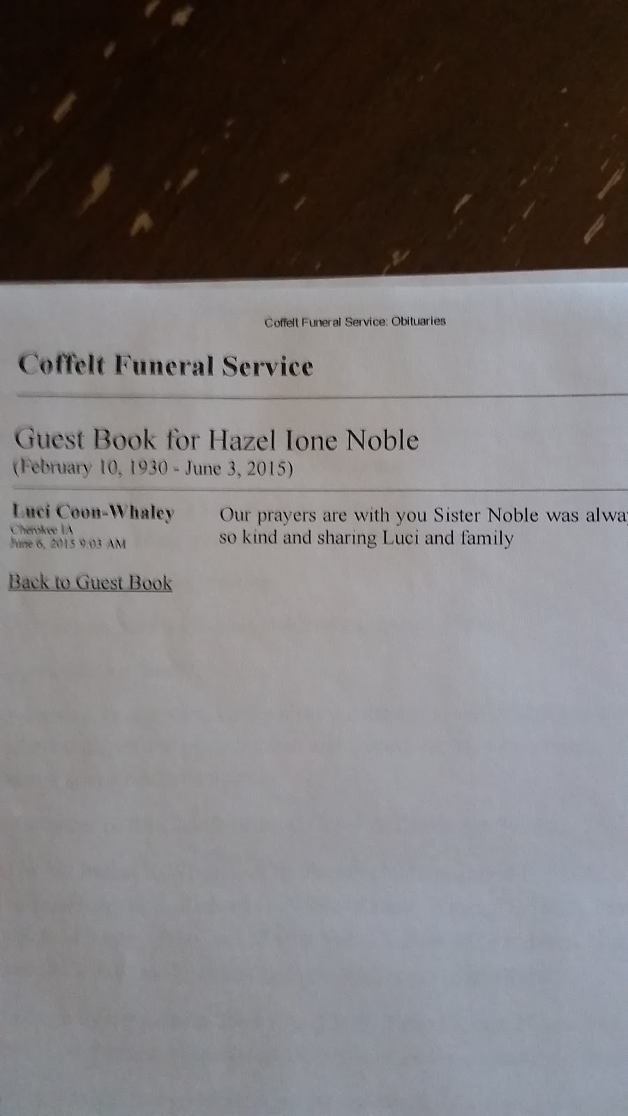 On Monday June 8th was the funeral. It was a wonderful service, very spiritual. I could feel grandma there. The spirit was so strong, the the gospel principles that were taught were very comforting.